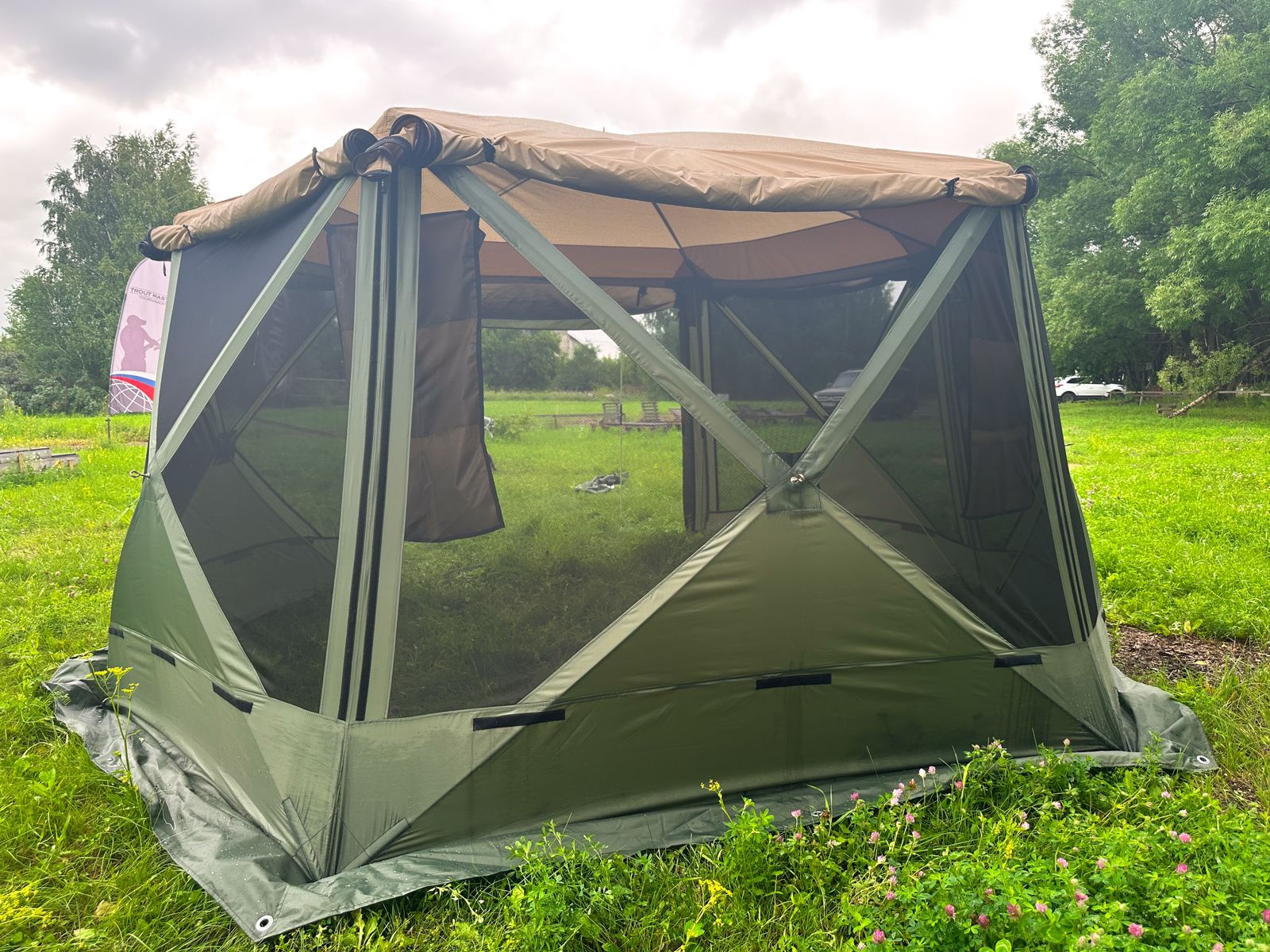 Стенки шатра могут быть закрыты полностью или открыты с москитной сеткой. Открываются по-отдельности. Молния на шторках смещена в сторону.