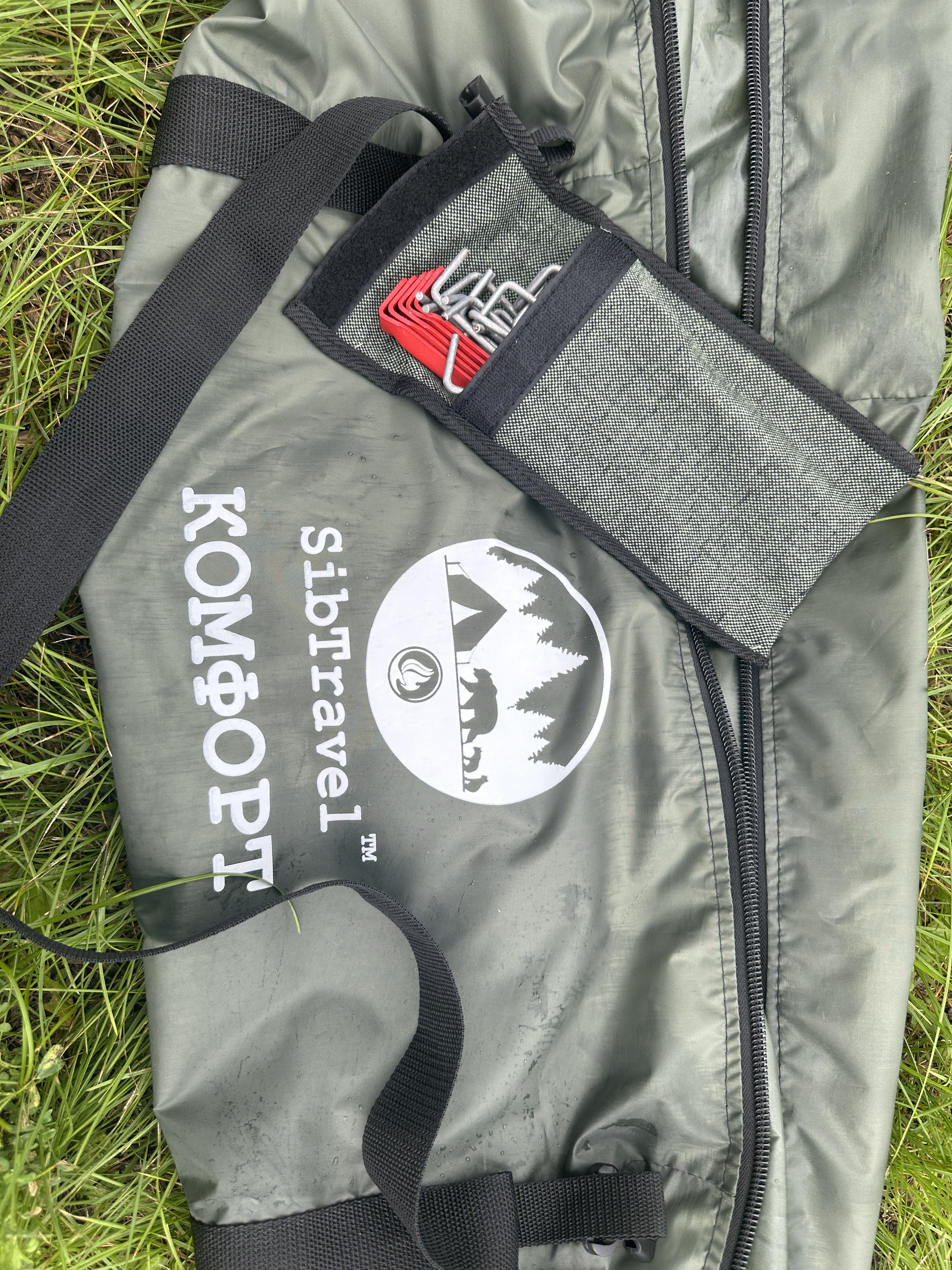 - 26 колышков двух видов (для тента и растяжек) в чехле из брезента.